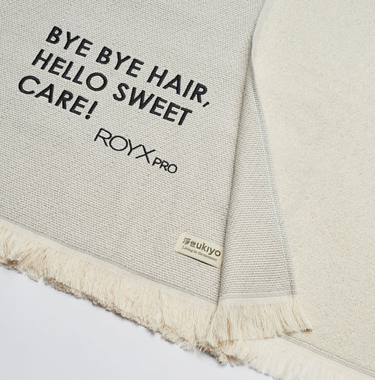 Hamamhanddoek 'Bye bye hair, hello sweet care' (100x180cm)