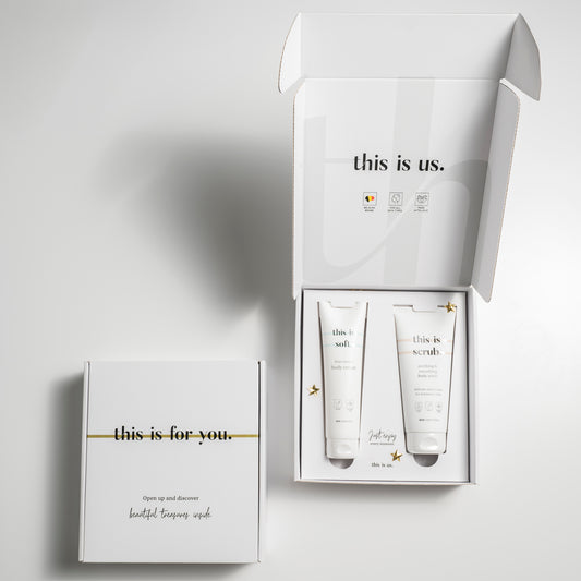 Cadeauset 'this is us.' (per 6) | body scrub (200ml) + body cream (150ml)