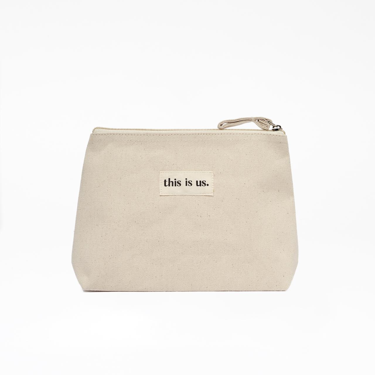 Toilettasje in katoen met een transparante afwasbare coating aan de binnenzijde.